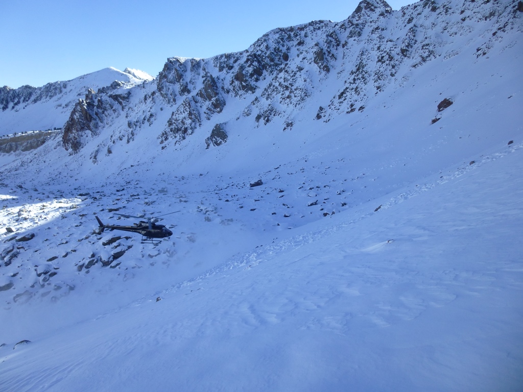 On Saturday, October 7, two skiers hiked 6 miles from the Upper Taylor Fork trailhead to the north couloir of Imp Peak in the southern Madison Range, approximately 20 miles south of Big Sky. Near the bottom of the couloir (10,000’), they triggered an avalanche while ascending on skis with skins. The avalanche was 1-2’ deep at the crown, approximately 150’ wide, and 300’ long. The slope where the avalanche released was 38-45° steep with a north-northeast aspect (aspectphoto, photo). Both skiers were caught, one was partially buried and one was fully buried. Skier 1 searched for his partner, was unable to locate her, and then hiked alone out from the area. On Monday, October 9, Gallatin County Search and Rescue recovered the body of Skier 2 who was 3’ deep. Personnel located her with avalanche probes. The avalanche is classified HS-ASu-R3-D2-O with a runout angle of 27°.