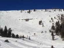 A ridge of high pressure is firmly parked over the western US. At 4 a.m. temperatures are in the low 20s under clear skies. Today will be a repeat of yesterday, but slightly warmer: sunny skies, westerly winds 15-30 mph and mountain temperatures reaching the upper-thirties. Sunburns are a greater threat today than avalanches.