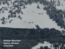 Another observer saw a large sslidenear Lionhead (photo) and one on Reas Peak from the same cycle.