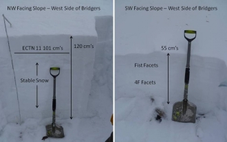 The few inches of snow that fell in the mountains around Bozeman, Big Sky and West Yellowstone will help raise spirits but will do little to raise the avalanche hazard. This latest dusting of snow will also do little to erase the variable conditions that have formed over the past few weeks.  On Thursday, I visited the west side of the Bridger Range and experienced changing conditions nearly every turn (photo1, photo2).  This type of adventure riding now seems to be the norm throughout much of our advisory area.