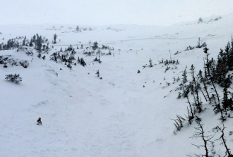Due to the weak interface between the new snow and old snow surface, slopes will not have to be wind loaded to produce avalanches. On slopes steeper than 35 degrees, it’s likely that skiers or riders will trigger soft slab avalanches.  These slides won’t be monsters, but they have the potential to produce enough speed and volume to carry and burry a skier or rider.  These slides will pose the most threat in steep, high consequence terrain (Saddle Peak) or on slopes with terrain traps such as creek beds or gullies.