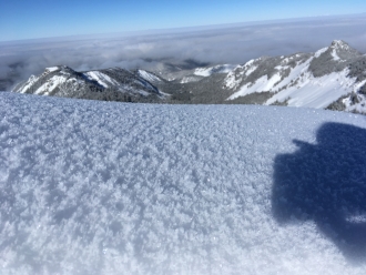Friday’s snowstorm dropped 5-7” in the northern ranges and 2-3” in the southern areas with westerly wind (photo, photo). Since then, the only avalanche activity reported has been new snow sluffing with ski cuts (incident). There have been no avalanches breaking on deeper layers. Throughout our forecast area we have a hodge-podge of surface texture: surface hoar (photo), small faceted (weak) grains and crusts on sunny aspects. Given the snow surface may change a few more times we won’t know the stability ramifications until it gets buried.