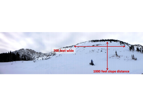 This avalanche occurred either Thur or Fri last week (March 21 or 22). New, wind, blown snow was the likely trigger. There was strong evidence of crossloading all season long on this slope. The crown was 3-4 feet deep and measured about 36 degrees. Photo: GNFAC