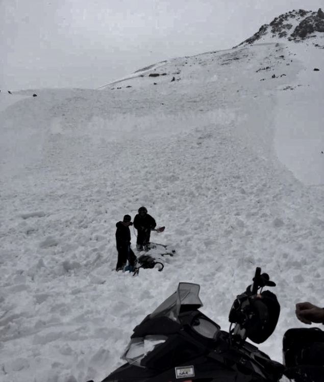 Digging out a sled moments after it was buried. Onene rider triggered this slope on Crown Butte on Saturday (12/6). Photo: Anonymous