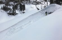 On the ski up Maid of the Mist in Hyalite we were able to get this small wind fetch to avalanche. It was a nice test slope to see if wind-loaded slopes would move. This was a "positive" result and we stuck to terrain without wind-loading. Photo: GNFAC
