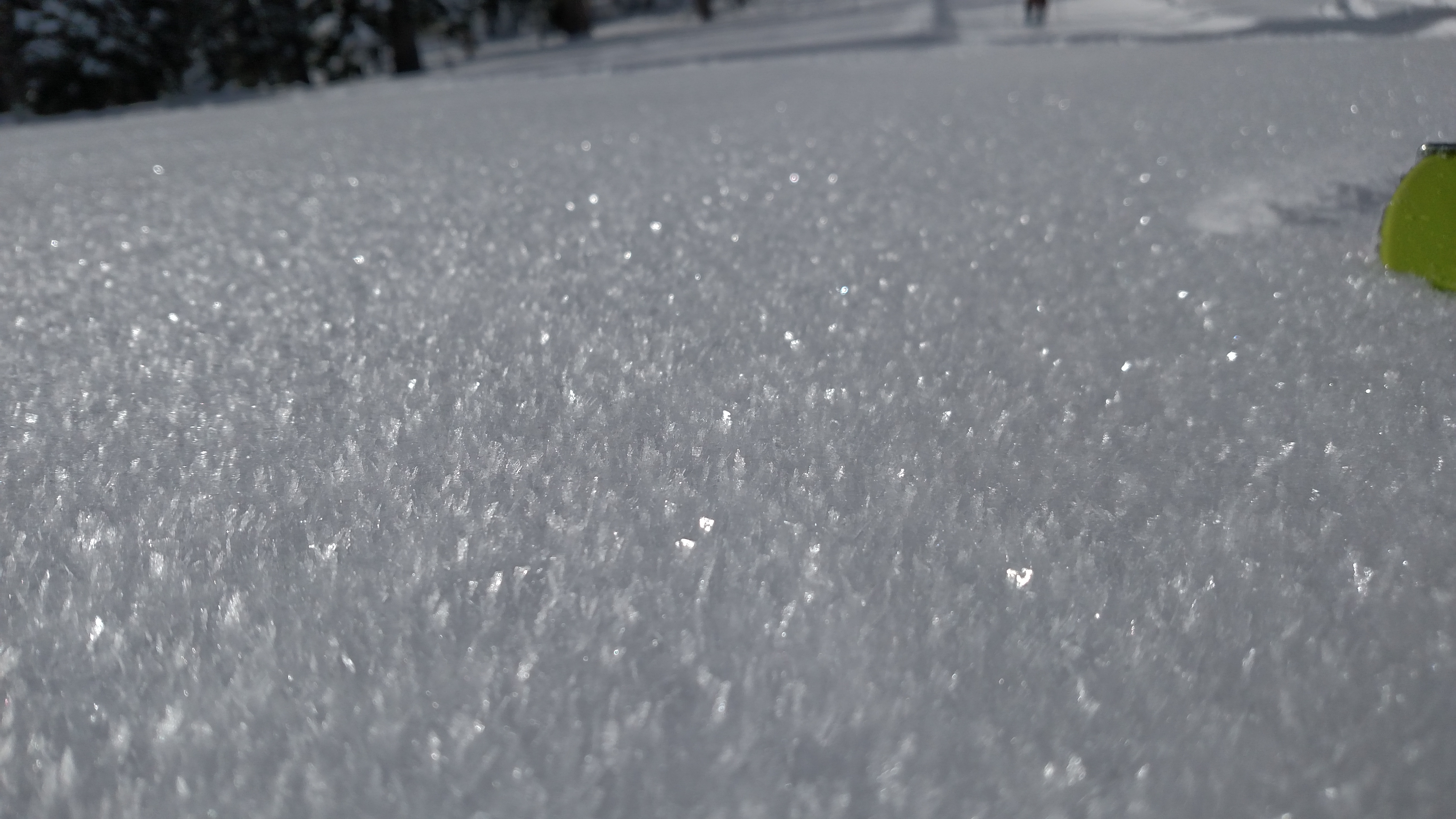 Skiers at Bridger Bowl noted that above the base of Alpine and Powder Park lifts, there was surface hoar covering just about everything that hadn't been groomed. Photo: S. Ranney
