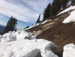 "South side of the Glide Plane released as a glide avalanche last evening (May 12th) sometime around 6 pm according to source. Bed surface was ground in starting zone of wet clay soil sparsely covered in long grass.  Debris chunks, some snowmobile sized, rode up on surface and slid approx. 200 vert.  Debris could have bumped a tower on the old Alpine lift if it still lived there. Last freeze was 6 am on the 10th of May.  The high temperature on the 12th was 59 degrees at 4 pm." Photo and observartions: BBSP