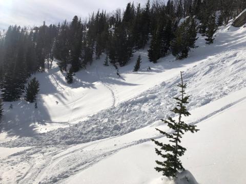 We found this fresh skier triggered avalanche in Middle Basin today 1/5/19. East aspect. 9,400’ elev. It broke 1-2’ deep on weak, sugary facets. We had stable results in our stability tests (so did another group nearby), but this slide and recent reports of collapsing in the area indicate an untrustworthy and unstable, poor snowpack structure.