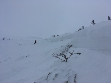 A natural 4-8' deep slab avalanche broke on Saddle Peak within the last couple days (2/6 or 2/7) during the current storm. Huge avalanches like this are likely and can be triggered by a human for the next couple days. The mountains received 3-5 feet of snow equal to 3-5" of SWE over the last week with more snow in the forecast. This heavy load is overloading a fragile snowpack, especially on wind loaded slopes. Travel conservatively. Photo: GNFAC