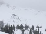 Froma skier that tooured in divide cirque today. "In the basin, between pt 10,201 and 10,024 there was a very large avalanche that must have slid yesterday or last night. It looks like it propagated at least 1000’ wide and at the deepest the crown was easily 5 feet. Visibility was low so it was hard to tell, but it was definitely a big slide." Photo: N. Salsburg