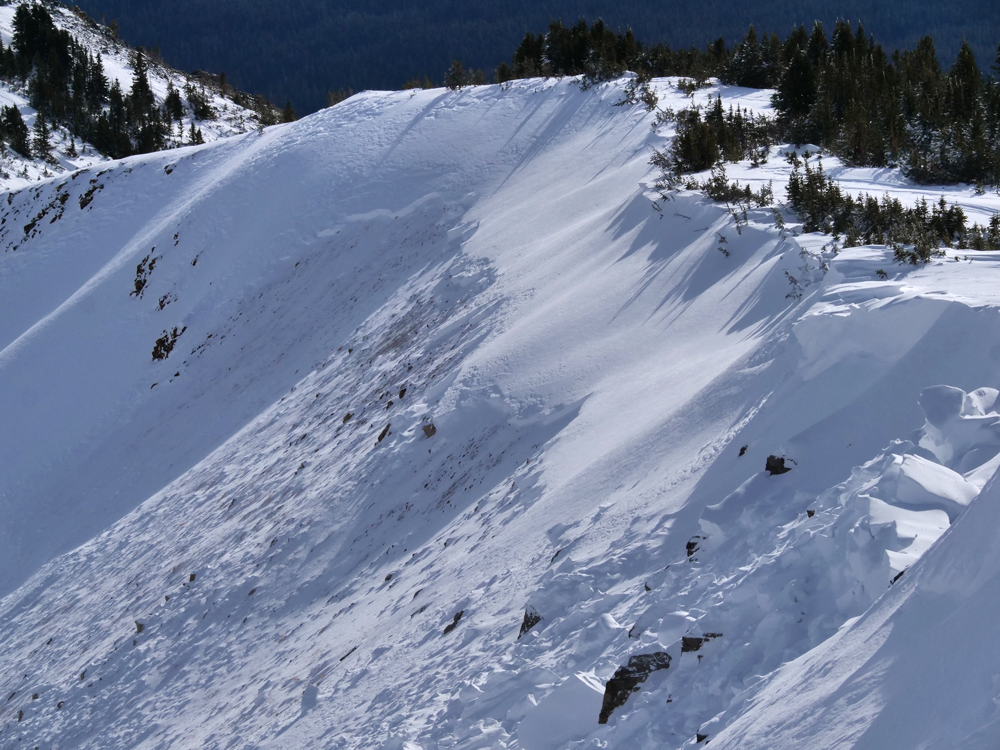 From e-mail 11/15/21: "east Henderson had a fresh slab avalanche- on a NE aspect around 10,000'.  It appeared to have failed on a weak layer near the ground, and I'd guess it was about 2-3' deep and 300'+ wide." Photo: B. Fredlund