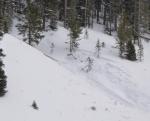 One of four small natural avalanches along Gallatin River that broke during the avalanche warning on January 5th, 2021.