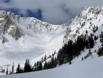 From email: "Saw debris from a fairly recent slab avi that slid in lookers right of arrowhead bowl (tough to see in photo but the crowns appeared to be a couple feet deep).  There were a bunch of other debris piles on similar aspects but I was too far for photos.  They probably slid on Friday night [4/22/22] as the debris had a few inches on top. "