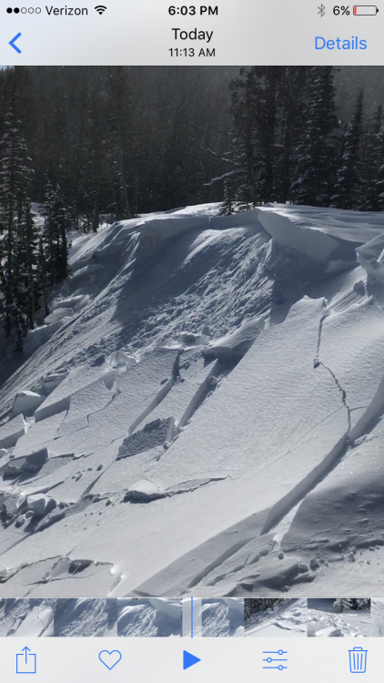 This wind slab was remotely triggered by skiers in the northern Bridger Range near Fairy Lake. Photo: M. Taylor