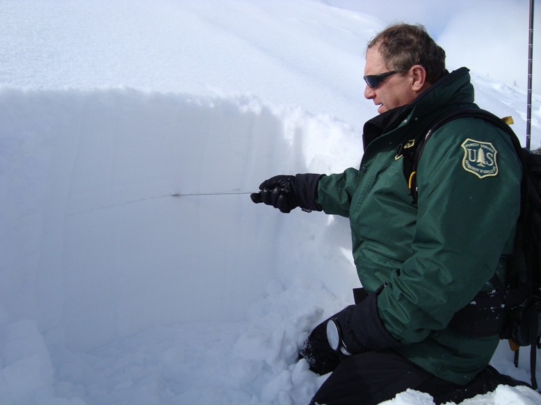 The avalanche on Mt Two Top slid on a layer of surface hoar easily seen in a pit wall. Fortunately you can quickly and easily locate this layer because it is only buried 15 inche deep.