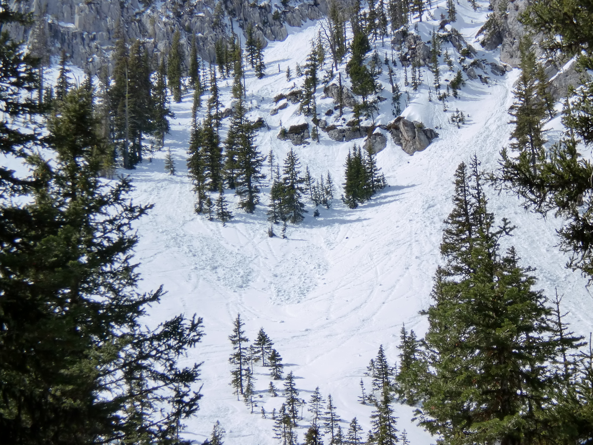 Loose, wet avalanches like these are signs the surface snow is getting wet and loosing strength.  This east facing slope had not had freezing tremperatures the last three days. Photo: J. Jacobs