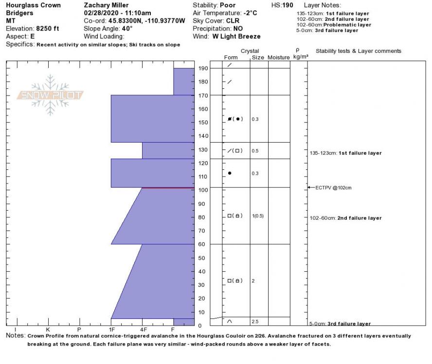Location Hourglass Chute Advisory Year 19-20 Forecast link: GNFAC Avalanche Forecast for Tue Mar 3, 2020Bridger Range, 2020-02-29Access other image sizes:Very Large 1200pxLarge 480pxMedium 220pxSmall 150pxOriginal