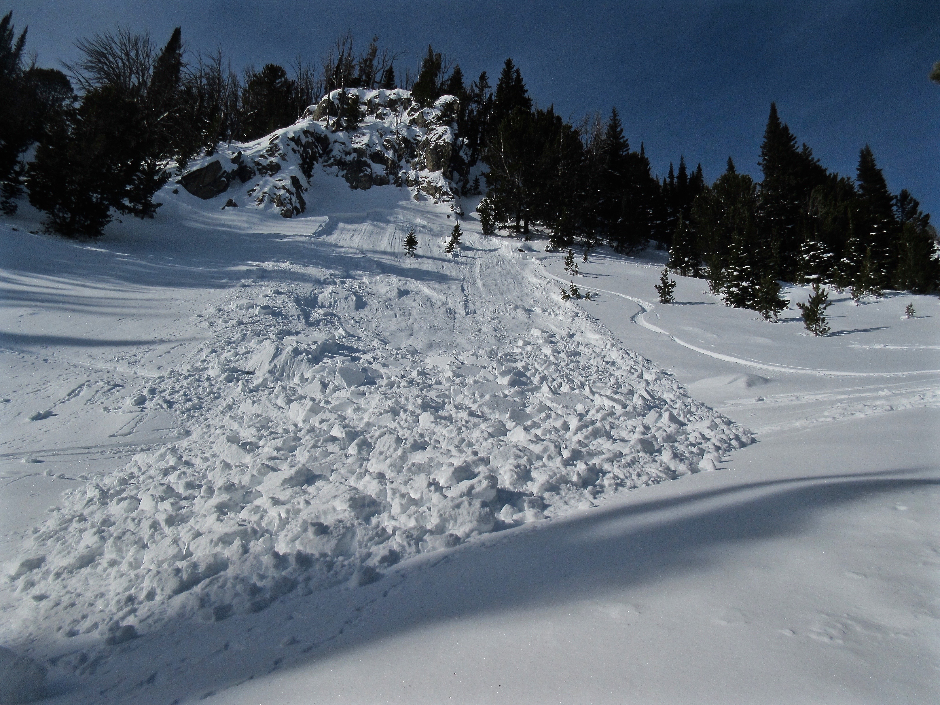 This avalanche was triggered by the second skier down the slope. Nobody was caught.