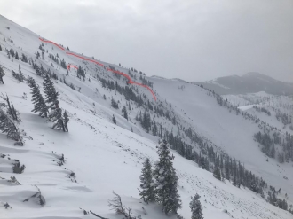 From BBSP on 3/2/19: "Large natural avalanche pulled out last night/early morning on the backside of north peak of saddle peak in Bostwick canyon, the slide path is known as the 'Y' to local skiers and hasn't run this year, or been skied. Crowns looked to be 3-6ft, it ran further than anything i've seen there in the past decade, knocking over small trees and some old standing dead in the run out. R3 D3.5."