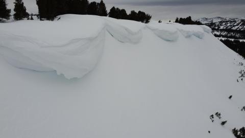 Cooke City, 2022-01-13 A cornice collapse likely triggered this large natural avalanche on 27 Dec 2021. The crown was 4-6' deep. Photo: S. Culotta Link to Avalanche Details |