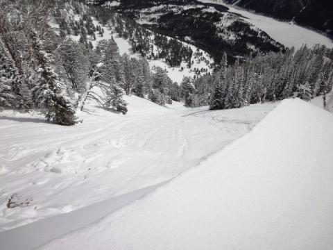Can you say POWDER! Since yesterday morning the mountains around Cooke City have received over 18 inches of low density snow. In most cases 18” of new snow equals well over an inch of water (SWE), but currently the Fisher Creek Snotel site is only recording .5 inches of SWE in the past 24 hours. This translates to cold smoke powder. A skier in Cooke City confirmed this saying yesterday was by far the deepest day of the season.
