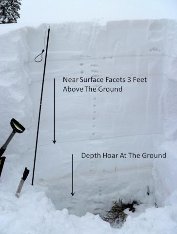Two distinct weak layers exist in the snowpack near Lionhead. Both layers are fully capable of producing avalanches. Photo GNFAC