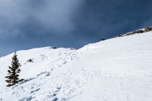 A skier triggered this small wind slab in the Bridger Range north Mt. Baldy. Photo J. Bacaj