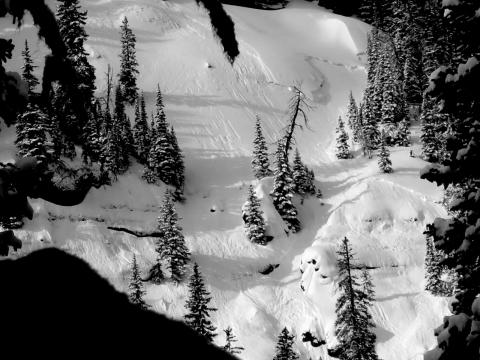 The upper layer will be our most significant concern as it gets buried deeper.  This surface hoar layer in Lionhead was small and unimpressive, but in other areas it's bigger and will be a problem. The lowest layer is also still a player on a few slopes (ECTP17). Photo: GNFAC