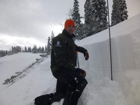 Skiers found a weak layer on an ice crust about a foot under the surface at Bacon Rind on Saturday. This is not a widespread issue, but it worth looking for since an ice crust would be easy to feel with a simple poke of a ski pole or swipe of your hand. Photo: H. Morrical