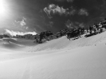 Cornices have grown large and overhang far over the edge. They are ready to break, especially with the warmer, above freezing temperatures. Photo: G. Antonioli