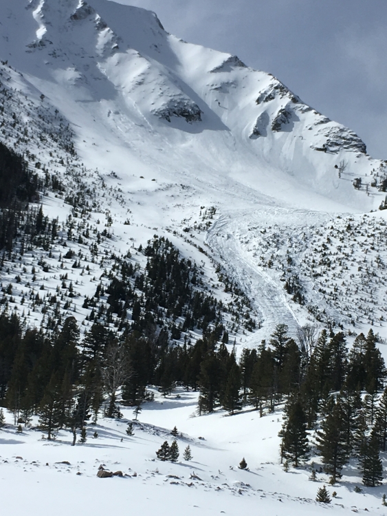 This slide was triggered by a cornice fall prior to Friday (3/10) on NE aspect in Sheep Creek. The crown was up to 6-10 feet deep and the slide ran to the bottom of the drainage. Photo: S. Barrier