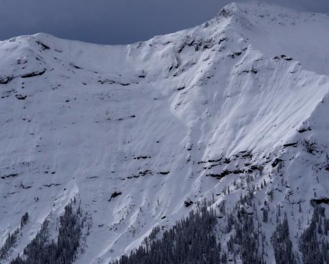 This slide on Saddle Peak occurred during or shortly after the storm on Nov. 3rd-4th. The slope appears to be wind loaded and the slide was likely triggered by a cornice fall. Photo: GNFAC