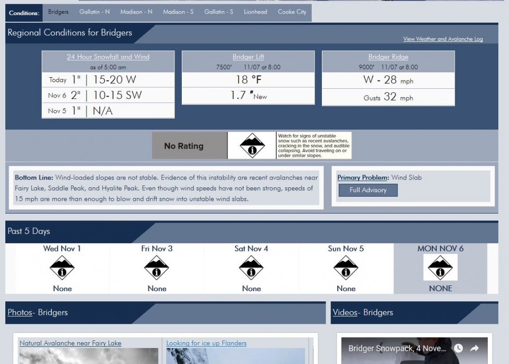 GNFAC Avalanche Advisory for Mon Nov 6, 2017