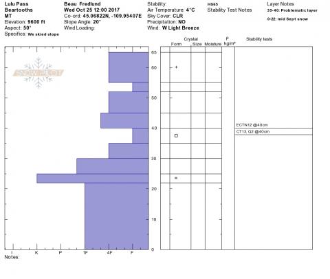 <p>Above average snowfall since mid-September has left 2-3 feet of snow on shady, high elevation slopes. Sunny aspects and lower elevations have little to no snow due to intermittent warm, sunny days (<a href="https://www.mtavalanche.com/images/17/cooke-city-snowpack-oct-15"><stro…;, <a href="https://www.mtavalanche.com/images/17/lionhead-ridge-19-oct"><strong>ph…;, <a href="https://www.mtavalanche.com/images/17/snowpit-near-imp-peak-avalanche">…;). Where there is enough snow to ride, there is enough snow to slide. Ice climbers, skiers, and hunters all need to prepare for avalanches this time of year.</p>