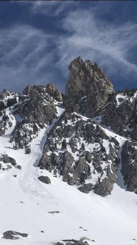 From IG obs (4/19/20): "Saw quite a few natural wet slides back in Middle Basin over the past two days, April 17-18. Witnessed several break loose naturally after about 2pm on anything from SW to SE slopes." Photo: @joshpelczar