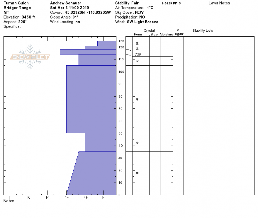 <p>Yesterday we toured on the west side of the Bridger Range. On upper elevation slopes (>7,500’) we found new snow on a supportable crust (<strong><a href="https://www.youtube.com/watch?v=foYa455ltOg&list=PLXu5151nmAvRNl9ku…;). The new snow bonded well to the crust, and clouds in the afternoon prevented wet snow activity. Today, warmer temperatures and potential rain make wet avalanches possible on all steep slopes.</p>